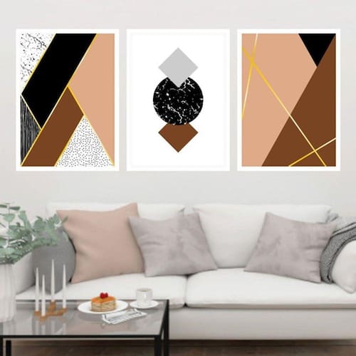 Kit 3 Quadros Decorativos Geométrico Marrom e Preto - Tamanho: A4 (20 x 30) / Acabamento: Película de acetato / Moldura: Madeira preta