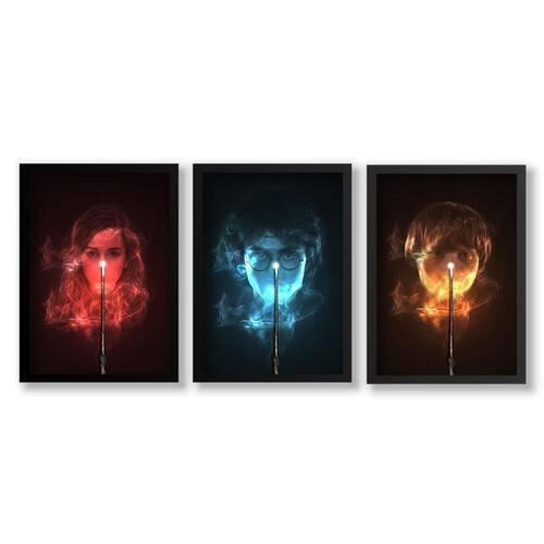 Kit 3 Quadros Decorativos Harry Potter Moldura Com Vidro