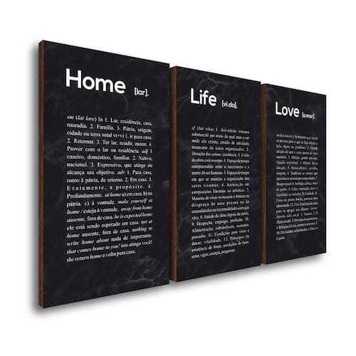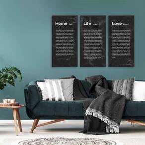 Kit 3 Quadros Decorativos Home Life Love 50x90cm