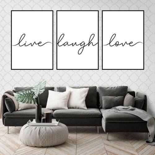 Kit 3 Quadros Decorativos Live, Laugh, Love - Tamanho: A4 (20 x 30) / Acabamento: Película de acetato / Moldura: Madeira preta