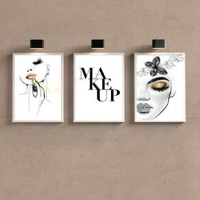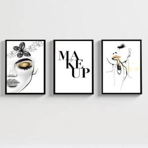 Renove a decoração do seu ambiente com o Kit 3 Quadros Decorativos Makeup Maquiagem. Com medidas de 45x34cm A3 , cada peça possui um design moderno e exclusivo, perfeito para dar um toque especial ao seu quarto, sala, cozinha, escritório, área gourmet e muito mais.