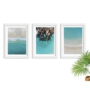 Kit 3 Quadros Decorativos Moldura Branca Mar Azul Pedras