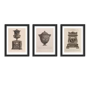 Kit 3 Quadros Decorativos Com Moldura Vasos Giovanni Piranesi Quadros decorativos fabricados com moldura de madeira de reflorestamento com acabamento laqueado, impressão a laser em papel couché 300g, fundo em madeira. As paredes ganham cor e vida com quadros e painéis decorativos. Escolha os modelos que faltam para deixar sua decoração ainda mais bonita. Na sala, no quarto ou em outros cômodos, as peças coloridas ou em preto e branco garantem mais estilo.