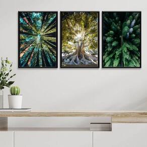 Kit 3 quadros decorativos natureza- árvores 45x34cm - com vidro Moldura: madeira preta Informações do produto tire todas as suas dúvidas no descritivo abaixo: decoração para quarto, sala, cozinha, escritório, área gourmet e muito mais. Chega de paredes vazias medidas - cada peça tem 45x34cm a3 . Material do papel - papel fotográfico brilhante de altíssima resolução acabamento - todos os quadros são acompanhados de vidro para proteção da imagem. - moldura em madeira maciça na cor preta ou branca conforme produto escolhido e pendurador . - os quadros são embalados de forma segura com plástico bolha com camada dupla de acordo com o tamanho dos quadros. Garantia - garantia de 3 meses. Meu quadro chegou. Como posso fixá-lo Você precisa apenas de um martelo e um prego, pois os quadros já vão acompanhados de penduradores. Esta é a forma mais indicada. Como posso limpar meu quadro A limpeza é feita como um móvel comum da sua casa. Apenas um pano seco ou espanador são suficientes para tal