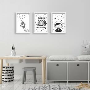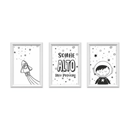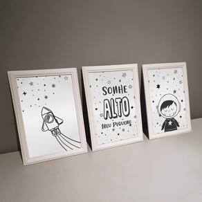 Kit 3 Quadros Decorativos Pequeno Astronauta 24x34cm