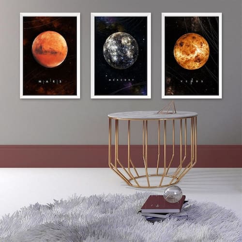Kit 3 Quadros Decorativos Planetas 33X24Cm - Com Vidro