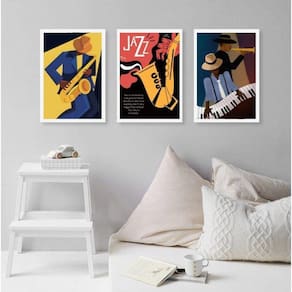 Kit 3 quadros decorativos posters cartazes jazz 33x24cm - com vidro Moldura: madeira branca Informações do produto tire todas as suas dúvidas no descritivo abaixo: decoração para quarto, sala, cozinha, escritório, área gourmet e muito mais. Chega de paredes vazias medidas - cada peça tem 33x24cm a4 . Material do papel - papel fotográfico brilhante de altíssima resolução acabamento - todos os quadros são acompanhados de vidro para proteção da imagem. - moldura em madeira maciça na cor preta ou branca conforme produto escolhido e pendurador . - os quadros são embalados de forma segura com plástico bolha com camada dupla de acordo com o tamanho dos quadros. Garantia - garantia de 3 meses. Meu quadro chegou. Como posso fixá-lo Você precisa apenas de um martelo e um prego, pois os quadros já vão acompanhados de penduradores. Esta é a forma mais indicada. Como posso limpar meu quadro A limpeza é feita como um móvel comum da sua casa. Apenas um pano seco ou espanador são suficientes para tal Ean: 7893618377519