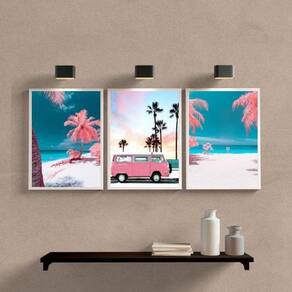 Kit 3 Quadros Decorativos Praia Kombi Rosa 45X34Cm