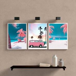 O Kit 3 Quadros Decorativos Praia Kombi Rosa é perfeito para dar um toque especial na decoração de diversos ambientes, como quarto, sala, cozinha, escritório, área gourmet e muito mais. Cada peça possui medidas de 45x34cm A3 e é feita com material de alta qualidade. Os quadros possuem moldura em madeira preta, que traz um visual elegante e moderno. Além disso, eles vêm acompanhados de vidro para proteção da imagem, garantindo maior durabilidade. A limpeza dos quadros é muito simples, sendo necessários apenas um pano seco ou um espanador. Assim, você pode mantê-los sempre bonitos e livres de poeira. Para fixar os quadros, basta utilizar um martelo e um prego, pois eles já vêm com penduradores. Essa é a forma mais indicada e fácil de instalá-los. Características: - Kit com 3 quadros decorativos - Tema: Praia Kombi Rosa - Medidas de cada peça: 45x34cm A3 - Material do papel: papel fotográfico brilhante de altíssima resolução - Moldura em madeira preta - Acompanha vidro para proteção da imagem - Fácil de limpar, basta usar um pano seco ou espanador - Acompanha penduradores para fixação - Embalados de forma segura com plástico bolha - de 3 meses Marca: Não Informado