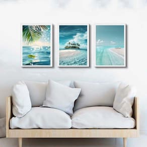 Kit 3 quadros decorativos praia paradizíaca 45x34cm - com vidro Cor: moldura branca Informações do produto tire todas as suas dúvidas no descritivo abaixo: decoração para quarto, sala, cozinha, escritório, área gourmet e muito mais. Chega de paredes vazias medidas - cada peça tem 45x34cm a3 . Material do papel - papel fotográfico brilhante de altíssima resolução acabamento - todos os quadros são acompanhados de vidro para proteção da imagem. - moldura em madeira maciça na cor preta ou branca conforme produto escolhido e pendurador . - os quadros são embalados de forma segura com plástico bolha com camada dupla de acordo com o tamanho dos quadros. - de 3 meses. Meu quadro chegou. Como posso fixá-lo Você precisa apenas de um martelo e um prego, pois os quadros já vão acompanhados de penduradores. Esta é a forma mais indicada. Como posso limpar meu quadro A limpeza é feita como um móvel comum da sua casa. Apenas um pano seco ou espanador são suficientes para tal Ean: 7891234542304