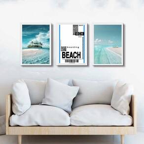 Kit 3 quadros decorativos praia - passagem 24x18cm - com vidro Cor: moldura preta Informações do produto tire todas as suas dúvidas no descritivo abaixo: decoração para quarto, sala, cozinha, escritório, área gourmet e muito mais. Chega de paredes vazias medidas - cada peça tem 24x18cm a5 . Material do papel - papel fotográfico brilhante de altíssima resolução acabamento - todos os quadros são acompanhados de vidro para proteção da imagem. - moldura em madeira maciça na cor preta ou branca conforme produto escolhido e pendurador . - os quadros são embalados de forma segura com plástico bolha com camada dupla de acordo com o tamanho dos quadros. Garantia - garantia de 3 meses. Meu quadro chegou. Como posso fixá-lo Você precisa apenas de um martelo e um prego, pois os quadros já vão acompanhados de penduradores. Esta é a forma mais indicada. Como posso limpar meu quadro A limpeza é feita como um móvel comum da sua casa. Apenas um pano seco ou espanador são suficientes para tal Ean: 7891234542199