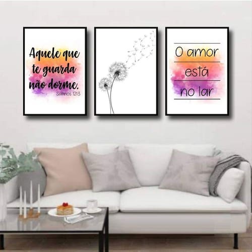 Kit 3 Quadros Decorativos Salmo 1213 - Amor Está no Ar - Tamanho: A4 (20 x 30) / Acabamento: Película de acetato / Moldura: Madeira preta