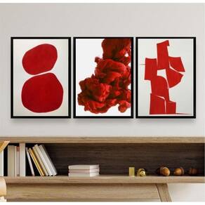 Kit 3 quadros decorativos vermelhos- arte moderna 45x34cm Moldura: madeira preta Informações do produto tire todas as suas dúvidas no descritivo abaixo: decoração para quarto, sala, cozinha, escritório, área gourmet e muito mais. Chega de paredes vazias. Medidas - cada peça tem 45x34cm a3 . Material do papel - papel fotográfico brilhante de altíssima resolução acabamento - todos os quadros são acompanhados de uma película de acetato para proteção da imagem. - os quadros são embalados de forma segura com plástico bolha com camada dupla de acordo com o tamanho dos quadros. Garantia - garantia de 3 meses. Meu quadro chegou. Como posso fixá-lo Você precisa apenas de um martelo e um prego, pois os quadros já vão acompanhados de penduradores. Esta é a forma mais indicada. Caso prefira, você pode utilizar uma fita dupla face neste caso, sugerimos de alta qualidade para evitar que descole e seu quadro caia . Como posso limpar meu quadro A limpeza é feita como um móvel comum da sua casa. Apenas um pano seco ou espanador são suficientes para tal Ean: 7893423992709