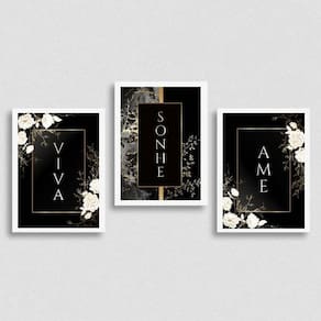 Kit 3 Quadros Decorativos Viva, Sonhe, Ame - Preto - Tamanho: A4 (20 x 30) / Acabamento: Película de acetato / Moldura: Madeira preta