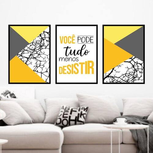 Kit 3 Quadros Decorativos Você Pode Tudo - Amarelo - Tamanho: A4 (20 x 30) / Acabamento: Película de acetato / Moldura: Madeira preta