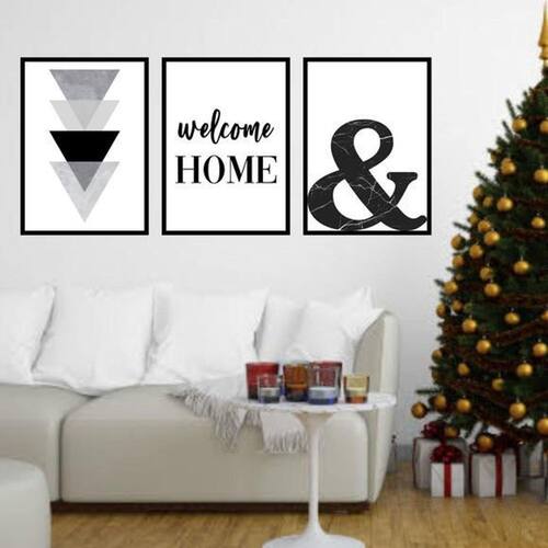 Kit 3 Quadros Decorativos Welcome Home Triângulos 34x23cm