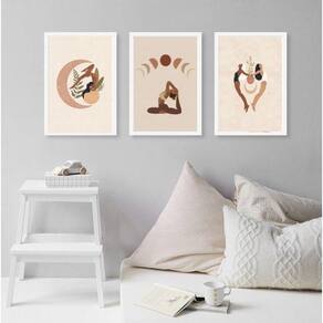Kit 3 quadros decorativos yoga boho 24x18cm Moldura: madeira branca Informações do produto tire todas as suas dúvidas no descritivo abaixo: decoração para quarto, sala, cozinha, escritório, área gourmet e muito mais. Chega de paredes vazias medidas - cada peça tem 24x18cm a5 . Material do papel - papel fotográfico brilhante de altíssima resolução acabamento - todos os quadros são acompanhados de uma película de acetato para proteção da imagem. - os quadros são embalados de forma segura com plástico bolha com camada dupla de acordo com o tamanho dos quadros. Garantia - garantia de 3 meses. Meu quadro chegou. Como posso fixá-lo Você precisa apenas de um martelo e um prego, pois os quadros já vão acompanhados de penduradores. Esta é a forma mais indicada. Caso prefira, você pode utilizar uma fita dupla face neste caso, sugerimos de alta qualidade para evitar que descole e seu quadro caia . Como posso limpar meu quadro A limpeza é feita como um móvel comum da sua casa. Apenas um pano seco ou espanador são suficientes para tal
