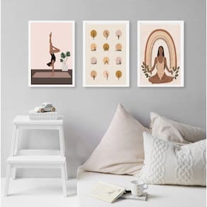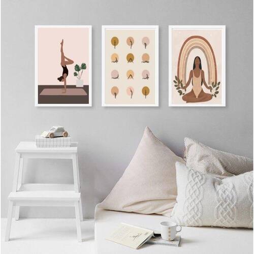 Kit 3 quadros decorativos yoga- posições 33x24cm Moldura: madeira branca Informações do produto tire todas as suas dúvidas no descritivo abaixo: decoração para quarto, sala, cozinha, escritório, área gourmet e muito mais. Chega de paredes vazias medidas - cada peça tem 33x24cm a4 . Material do papel - papel fotográfico brilhante de altíssima resolução acabamento - todos os quadros são acompanhados de uma película de acetato para proteção da imagem. - os quadros são embalados de forma segura com plástico bolha com camada dupla de acordo com o tamanho dos quadros. Garantia - garantia de 3 meses. Meu quadro chegou. Como posso fixá-lo Você precisa apenas de um martelo e um prego, pois os quadros já vão acompanhados de penduradores. Esta é a forma mais indicada. Caso prefira, você pode utilizar uma fita dupla face neste caso, sugerimos de alta qualidade para evitar que descole e seu quadro caia . Como posso limpar meu quadro A limpeza é feita como um móvel comum da sua casa. Apenas um pano seco ou espanador são suficientes para tal