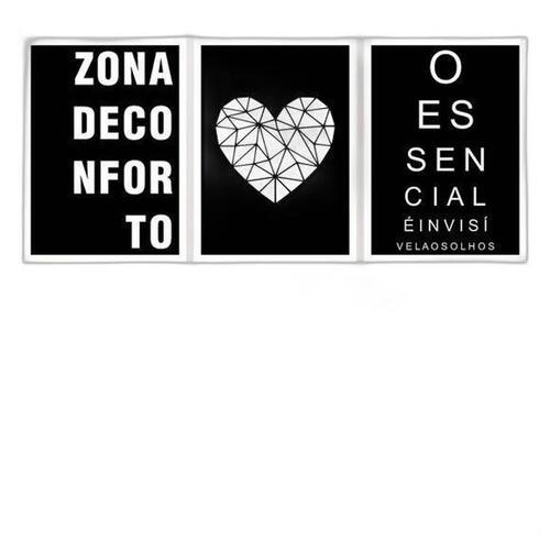 Esse Kit com 3 Quadros Decorativos Zona De Conforto Coração é uma excelente opção para decorar seu ambiente, tornando-o mais aconchegante, bonito e com muito estilo. Para facilitar na instalação, o quadro já vem com pendurador que pode ser removido com facilidade. O quadro é produzido com papel fotográfico brilhante de alta resolução e acompanha uma película de acetato para proteção das imagens. Além disso vem com moldura em madeira maciça e pendurador móvel que pode ser retirado facilmente caso deseje fixar com fita dupla face.