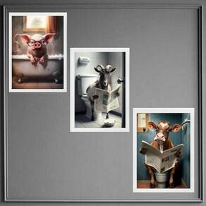 Kit 3 quadros divertidos banheiro de sítio 33x24cm - com vidro Moldura: madeira branca Informações do produto tire todas as suas dúvidas no descritivo abaixo: decoração para quarto, sala, cozinha, escritório, área gourmet e muito mais. Chega de paredes vazias medidas - cada peça tem 33x24cm a4 . Material do papel - papel fotográfico brilhante de altíssima resolução acabamento - todos os quadros são acompanhados de vidro para proteção da imagem. - moldura em madeira maciça na cor preta ou branca conforme produto escolhido e pendurador . - os quadros são embalados de forma segura com plástico bolha com camada dupla de acordo com o tamanho dos quadros. Garantia - garantia de 3 meses. Meu quadro chegou. Como posso fixá-lo Você precisa apenas de um martelo e um prego, pois os quadros já vão acompanhados de penduradores. Esta é a forma mais indicada. Como posso limpar meu quadro A limpeza é feita como um móvel comum da sua casa. Apenas um pano seco ou espanador são suficientes para tal