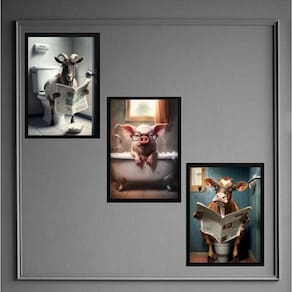Kit 3 quadros divertidos banheiro fazenda 33x24cm