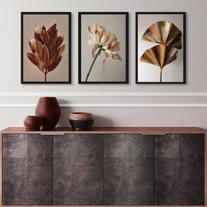 Kit 3 quadros elegantes flores marrom bege dourado 24x18cm Moldura: madeira preta Informações do produto tire todas as suas dúvidas no descritivo abaixo: decoração para quarto, sala, cozinha, escritório, área gourmet e muito mais. Chega de paredes vazias medidas - cada peça tem 24x18cm a5 . Material do papel - papel fotográfico brilhante de altíssima resolução acabamento - todos os quadros são acompanhados de uma película de acetato para proteção da imagem. - os quadros são embalados de forma segura com plástico bolha com camada dupla de acordo com o tamanho dos quadros. Garantia - garantia de 3 meses. Meu quadro chegou. Como posso fixá-lo Você precisa apenas de um martelo e um prego, pois os quadros já vão acompanhados de penduradores. Esta é a forma mais indicada. Caso prefira, você pode utilizar uma fita dupla face neste caso, sugerimos de alta qualidade para evitar que descole e seu quadro caia . Como posso limpar meu quadro A limpeza é feita como um móvel comum da sua casa. Apenas um pano seco ou espanador são suficientes para tal Ean: 7896013491613