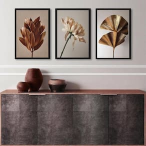 Kit 3 Quadros Elegantes Flores Marrom Bege Dourado 33X24Cm