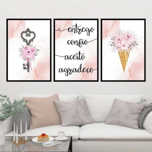 Kit 3 Quadros Entrego Aceito Confio Agradeço 45X34Cm