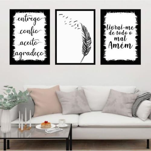 Kit 3 quadros entrego, confio e aceito 24x18cm Moldura: madeira preta Informações do produto tire todas as suas dúvidas no descritivo abaixo: decoração para quarto, sala, cozinha, escritório, área gourmet e muito mais. Chega de paredes vazias medidas - cada peça tem 24x18cm a5 . Material do papel - papel fotográfico brilhante de altíssima resolução acabamento - todos os quadros são acompanhados de uma película de acetato para proteção da imagem. - moldura em madeira maciça na cor branca e pendurador móvel que pode ser retirado facilmente caso deseje fixar com fita dupla face. - os quadros são embalados de forma segura com plástico bolha com camada dupla de acordo com o tamanho dos quadros. - de 3 meses prazo de envio pedimos 24 horas úteis no máximo para enviar seu pedido após o envio, segue os prazos normais dos correios, cerca de 7 exceto para norte e nordeste, que pode ser de até 14 . Em diversas cidades, este prazo normalmente é reduzido, mas depende do prazo dos correios. Meu quadro chegou. Como posso fixá-lo Você precisa apenas de um martelo e um prego, pois os quadros já vão acompanhados de penduradores. Esta é a forma mais indicada. Caso prefira, você pode utilizar uma fita dupla face neste caso, sugerimos de alta qualidade para evitar que descole e seu quadro caia . Como posso limpar meu quadro A limpeza é feita como um móvel comum da sua casa. Apenas um pano seco ou espanador são suficientes para tal Marca: Não Informado