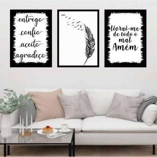 Kit 3 quadros entrego, confio e aceito 60x40cm Moldura: madeira preta Informações do produto tire todas as suas dúvidas no descritivo abaixo: decoração para quarto, sala, cozinha, escritório, área gourmet e muito mais. Chega de paredes vazias medidas - cada peça tem 60x42cm a2 . Material do papel - papel fotográfico brilhante de altíssima resolução acabamento - todos os quadros são acompanhados de uma película de acetato para proteção da imagem. - os quadros são embalados de forma segura com plástico bolha com camada dupla de acordo com o tamanho dos quadros. - de 3 meses. Meu quadro chegou. Como posso fixá-lo Você precisa apenas de um martelo e um prego, pois os quadros já vão acompanhados de penduradores. Esta é a forma mais indicada. Caso prefira, você pode utilizar uma fita dupla face neste caso, sugerimos de alta qualidade para evitar que descole e seu quadro caia . Como posso limpar meu quadro A limpeza é feita como um móvel comum da sua casa. Apenas um pano seco ou espanador são suficientes para tal Marca: Não Informado