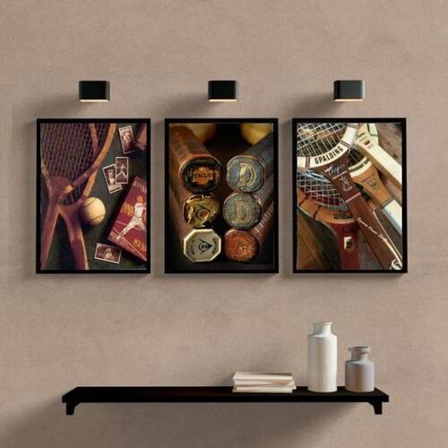 Kit 3 quadros esporte tênis vintage 45x34cm - com vidro Moldura: madeira preta Informações do produto Decoração para quarto, sala, cozinha, escritório, área gourmet e muito mais. Chega de paredes vazias Medidas - cada peça tem 45x34cm a3 . Material do papel - papel fotográfico brilhante de altíssima resolução Acabamento - todos os quadros são acompanhados de vidro para proteção da imagem. - moldura em madeira maciça e pendurador . - os quadros são embalados de forma segura com plástico bolha com camada dupla de acordo com o tamanho dos quadros. - de 3 meses. Meu quadro chegou. Como posso fixá-lo Você precisa apenas de um martelo e um prego, pois os quadros já vão acompanhados de penduradores. Esta é a forma mais indicada. Como posso limpar meu quadro A limpeza é feita como um móvel comum da sua casa. Apenas um pano seco ou espanador são suficientes para tal. Marca: Não Informado