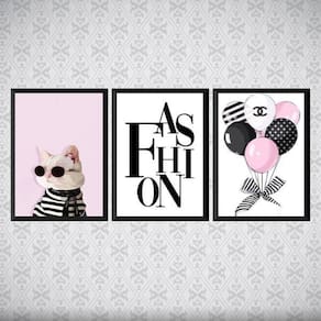 Kit 3 quadros fashion moda rosa e preto 33x24cm Moldura: madeira branca Informações do produto tire todas as suas dúvidas no descritivo abaixo: decoração para quarto, sala, cozinha, escritório, área gourmet e muito mais. Chega de paredes vazias medidas - cada peça tem 33x24cm a4 . Material do papel - papel fotográfico brilhante de altíssima resolução acabamento - todos os quadros são acompanhados de uma película de acetato para proteção da imagem. - os quadros são embalados de forma segura com plástico bolha com camada dupla de acordo com o tamanho dos quadros. - de 3 meses. Meu quadro chegou. Como posso fixá-lo Você precisa apenas de um martelo e um prego, pois os quadros já vão acompanhados de penduradores. Esta é a forma mais indicada. Caso prefira, você pode utilizar uma fita dupla face neste caso, sugerimos de alta qualidade para evitar que descole e seu quadro caia . Como posso limpar meu quadro A limpeza é feita como um móvel comum da sua casa. Apenas um pano seco ou espanador são suficientes para tal