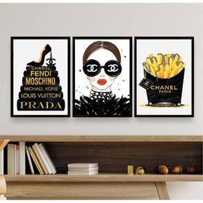 O Kit 3 Quadros Fashion Marcas Famosas Mulher Livros 45X34Cm é perfeito para dar um toque de estilo e personalidade à decoração do seu ambiente. Composto por três quadros com estampas fashion de marcas famosas, mulher e livros, esse kit é ideal para decorar quarto, sala, cozinha, escritório, área gourmet e muito mais. Cada peça do kit possui as medidas de 45x34cm A3 e é feita com moldura de madeira branca, garantindo resistência e durabilidade. Além disso, os quadros são acompanhados de uma película de acetato para proteção da imagem, garantindo a qualidade e o acabamento perfeito. A limpeza dos quadros é muito simples, basta utilizar um pano seco ou um espanador, assim como você faria com um móvel comum da sua casa. Não é necessário nenhum produto específico para a limpeza. A fixação dos quadros também é muito fácil. Eles já vêm acompanhados de penduradores, então você só precisa de um martelo e um prego para fixá-los na parede. Caso prefira, também é possível utilizar uma fita dupla face de alta qualidade para fixação, evitando que o quadro descole e caia. O Kit 3 Quadros Fashion Marcas Famosas Mulher Livros 45X34Cm possui de 3 meses, garantindo a sua satisfação e confiança na qualidade do produto. Adquira já o seu! Marca: Não Informado
