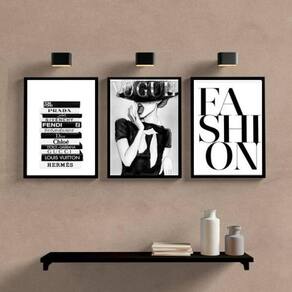 Kit 3 quadros fashion preto e branco 33x24cm - com vidro Moldura: madeira preta
