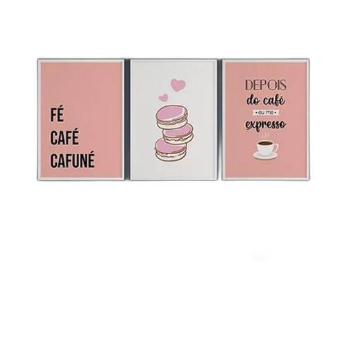 Kit 3 quadros fé café e cafuné 24x18cm Moldura: madeira branca