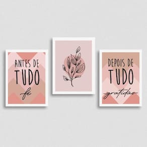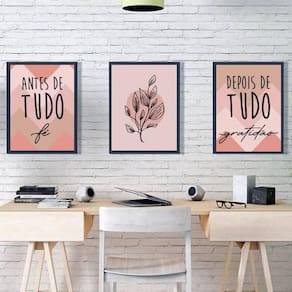 Kit 3 Quadros Fé E Gratidão - Chevron 45X34Cm Tamanho: a3 45 x 34 Acabamento: película de acetato Moldura: madeira branca Informações do produto Decoração para quarto, sala, cozinha, escritório, área gourmet e muito mais. Chega de paredes vazias Medidas - cada peça tem 45x34cm a3 . Material do papel - papel fotográfico brilhante de altíssima resolução Acabamento - todos os quadros são acompanhados de uma película de acetato para proteção da imagem. - moldura em madeira maciça na cor preta ou branca e pendurador móvel que pode ser retirado facilmente caso deseje fixar com fita dupla face. - os quadros são embalados de forma segura com plástico bolha com camada dupla de acordo com o tamanho dos quadros. - de 3 meses Meu quadro chegou. Como posso fixá-lo Você precisa apenas de um martelo e um prego, pois os quadros já vão acompanhados de penduradores. Esta é a forma mais indicada. Caso prefira, você pode utilizar uma fita dupla face neste caso, sugerimos de alta qualidade para evitar que descole e seu quadro caia . Como posso limpar meu quadro A limpeza é feita como um móvel comum da sua casa. Apenas um pano seco ou espanador são suficientes para tal