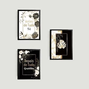 Kit 3 quadros fé e gratidão costela de adão 33x24cm - com vidro Moldura: madeira branca Informações do produto tire todas as suas dúvidas no descritivo abaixo: decoração para quarto, sala, cozinha, escritório, área gourmet e muito mais. Chega de paredes vazias medidas - cada peça tem 33x24cm a4 . Material do papel - papel fotográfico brilhante de altíssima resolução acabamento - todos os quadros são acompanhados de vidro para proteção da imagem. - moldura em madeira maciça na cor preta e pendurador . - os quadros são embalados de forma segura com plástico bolha com camada dupla de acordo com o tamanho dos quadros. Garantia - garantia de 3 meses. Meu quadro chegou. Como posso fixá-lo Você precisa apenas de um martelo e um prego, pois os quadros já vão acompanhados de penduradores. Esta é a forma mais indicada. Como posso limpar meu quadro A limpeza é feita como um móvel comum da sua casa. Apenas um pano seco ou espanador são suficientes para tal