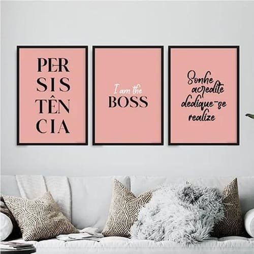 Kit 3 quadros femininos persistência 33x24cm Moldura: madeira preta Informações do produto Decoração para quarto, sala, cozinha, escritório, área gourmet e muito mais. Chega de paredes vazias Medidas - cada peça tem 33x24cm a4 . Material do papel - papel fotográfico brilhante de altíssima resolução Acabamento - todos os quadros são acompanhados de uma película de acetato para proteção da imagem. - os quadros são embalados de forma segura com plástico bolha com camada dupla de acordo com o tamanho dos quadros. - de 3 meses. Meu quadro chegou. Como posso fixá-lo Você precisa apenas de um martelo e um prego, pois os quadros já vão acompanhados de penduradores. Esta é a forma mais indicada. Caso prefira, você pode utilizar uma fita dupla face neste caso, sugerimos de alta qualidade para evitar que descole e seu quadro caia . Como posso limpar meu quadro A limpeza é feita como um móvel comum da sua casa. Apenas um pano seco ou espanador são suficientes para tal Ean: 7893287163291