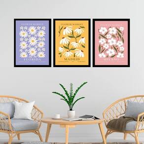 Kit 3 Quadros Flores Flowers Market 33X24Cm - Com Vidro