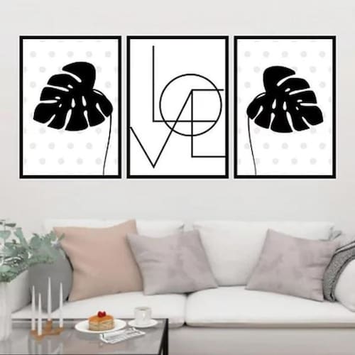 Kit 3 quadros folhas pretas love 33x24cm - com vidro Moldura: madeira preta Informações do produto Decoração para quarto, sala, cozinha, escritório, área gourmet e muito mais. Chega de paredes vazias Medidas - cada peça tem 33x24cm a4 . Material do papel - papel fotográfico brilhante de altíssima resolução Acabamento - todos os quadros são acompanhados de vidro para proteção da imagem. - Moldura em madeira maciça na cor preta e pendurador. - Os quadros são embalados de forma segura com plástico bolha com camada dupla de acordo com o tamanho dos quadros. - de 3 meses. Meu quadro chegou. Como posso fixá-lo Você precisa apenas de um martelo e um prego, pois os quadros já vão acompanhados de penduradores. Esta é a forma mais indicada. Como posso limpar meu quadro A limpeza é feita como um móvel comum da sua casa. Apenas um pano seco ou espanador são suficientes para tal Ean: 7895142199605