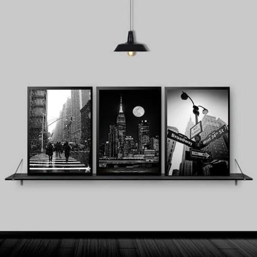 Kit 3 quadros fotografias new york 33x24cm - com vidro