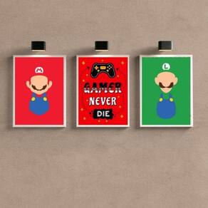 Com garantia de 3 meses, o Kit 3 Quadros Para Quarto Gamer Game Never Die 24X18Cm é perfeito para os fãs de games que desejam deixar o ambiente ainda mais personalizado e com estilo. Adquira já o seu e transforme a decoração do seu espaço! Ean: 7899225048026