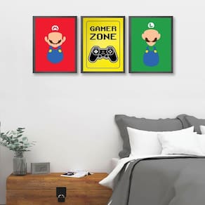 Garanta já o seu Kit 3 Quadros Quarto Gamer Zone Coloridos 33X24Cm - Vidro e transforme a decoração do seu ambiente. Ean: 7890599250183