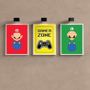 Kit 3 Quadros Gamer Zone Coloridos 45x34cm c/ Vidro