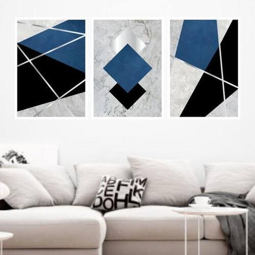 Kit 3 Quadros Geométrico Cinza, Azul, Prata 60X40Cm Branca Moldura: madeira branca Informações do produto tire todas as suas dúvidas no descritivo abaixo: decoração para quarto, sala, cozinha, escritório, área gourmet e muito mais. Chega de paredes vazias medidas - cada peça tem 60x42cm a2 . Material do papel - papel fotográfico brilhante de altíssima resolução acabamento - todos os quadros são acompanhados de uma película de acetato para proteção da imagem. - os quadros são embalados de forma segura com plástico bolha com camada dupla de acordo com o tamanho dos quadros. - de 3 meses. Meu quadro chegou. Como posso fixá-lo Você precisa apenas de um martelo e um prego, pois os quadros já vão acompanhados de penduradores. Esta é a forma mais indicada. Caso prefira, você pode utilizar uma fita dupla face neste caso, sugerimos de alta qualidade para evitar que descole e seu quadro caia . Como posso limpar meu quadro A limpeza é feita como um móvel comum da sua casa. Apenas um pano seco ou espanador são suficientes para tal Marca: Não Informado