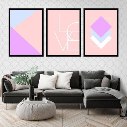 Kit 3 Quadros Geométricos Love Lilás 45X34Cm