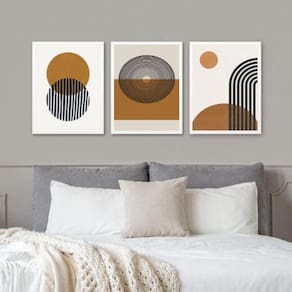 Kit 3 quadros geométricos quarto marrom 33x24cm
