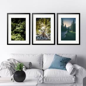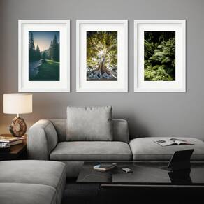 Kit 3 Quadros Grandes Árvores - 60x48cm - Cor: Moldura Branca