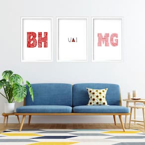 Kit 3 Quadros Grandes BH Uai MG 60x48cm - Cor: Moldura Branca