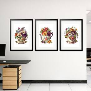 Kit 3 quadros grandes chá e flores 60x48cm Cor: moldura branca Informações do produto tire todas as suas dúvidas no descritivo abaixo: decoração para quarto, sala, cozinha, escritório, área gourmet e muito mais. Chega de paredes vazias medidas - cada peça tem 60x48cm . Material do papel - papel fotográfico brilhante de altíssima resolução acabamento - todos os quadros são acompanhados de vidro para proteção da imagem. - moldura em madeira maciça na cor preta ou branca conforme produto escolhido e pendurador. - paspatur branco com 7cm de largura - os quadros são embalados de forma segura com plástico bolha com camada dupla de acordo com o tamanho dos quadros. - de 3 meses. Meu quadro chegou. Como posso fixá-lo Você precisa apenas de um martelo e um prego, pois os quadros já vão acompanhados de penduradores. Esta é a forma mais indicada. Como posso limpar meu quadro A limpeza é feita como um móvel comum da sua casa. Apenas um pano seco ou espanador são suficientes para tal